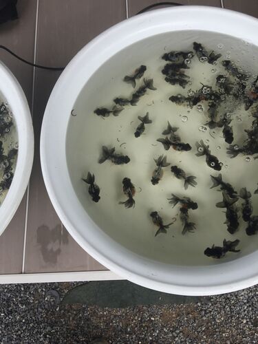 孵化後110日目の変わり竜。 少し小さめの変わり竜です。黒青竜っぽい魚が多いですが、ほとんどがオレンジなり赤が入って五花竜です。本日水換えしました。 黒は濃くて多い魚たちです。数は約80匹くらい残しています。もちろん会魚はほとんどいませんが、各ヒ…