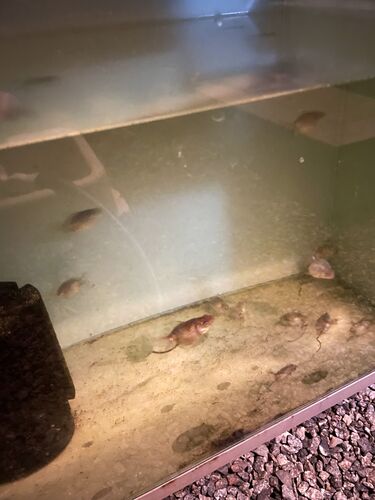 久しぶりの投稿になります。 穂竜稚魚飼育の現在の状況です。 夜に撮った写真なので見えにくいです。先月から私事でかなりバタバタしていまして、思うように稚魚や親魚たちの世話ができず調子を崩させないように餌を調整する日々が続いていました。